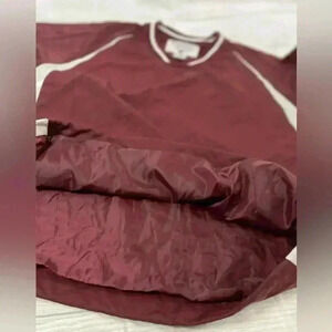 Champion Vintage 90s Adult M Pullover V-Neck Windbreaker Lined Jacket Maroon red