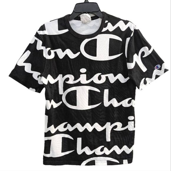 Champion Vintage 90s Men's M black and white graphic Big C logo crew t-shirt tee