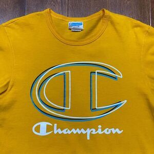 Champion Vintage Big Logo Golden Yellow Cotton Tee T-Shirt Men's Size Medium