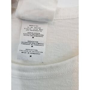 This pre-owned t-shirt has been machine washed and is ready to be worn. It's a great choice for men who love classic and timeless fashion. Don't miss out on this opportunity to own a piece of Champion's history. This isn't a crisp white and has a small stain on the back. It measures 20" from armpit to armpit and 27" from shoulder to hem.