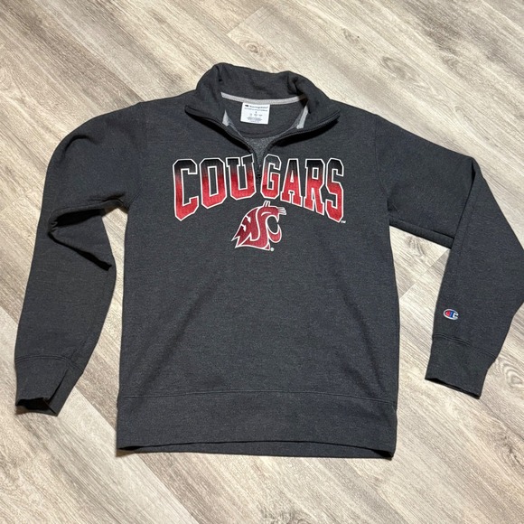 Keywords: Champion, Washington State Cougars, WSU, Sweatshirt, Pullover, Gray, Small, Athletic, College, University, Team, Apparel, Womens, Sportswear, Quarter Zip