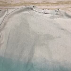 This sweatshirt is in good condition. Watermark on the front as pictured. Blue green teal and white ombré effect. Long sleeve sweatshirt. Reverse weave. Women’s size small. 1.5.23 Q