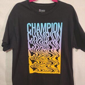 Classic white tee featuring repeated Champion logo. Soft and casual. size Xl