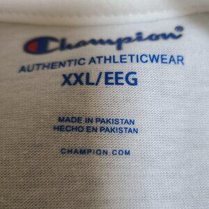 Styled to fit a women's shape a bit more than regular t-shirts, this authentic Champion shirt is an XXL.
