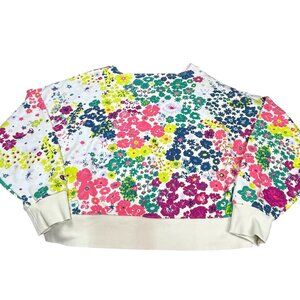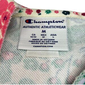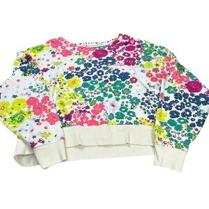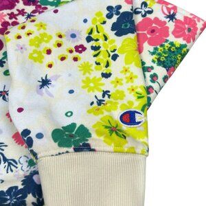 Champion Woman's Floral Crop Sweatshirt Large Raw Neckline Pullover Ribbed Hem