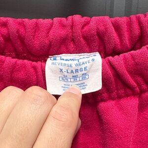 Vibrant pink track pants by Champion. Ideal for casual wear. These have been worn once. No flaws. Smoke free closet.