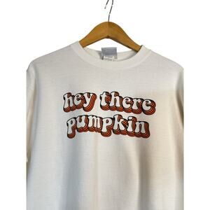 Champion Women S600 Oversized Hey There Pumpkin Pullover Sweatshirt Size L White