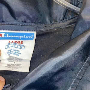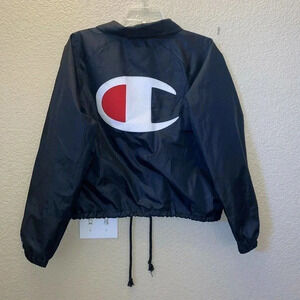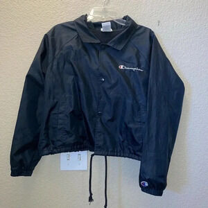 Champion Womens Athletic Navy Heritage Script Logo Coaches Jacket Size L.