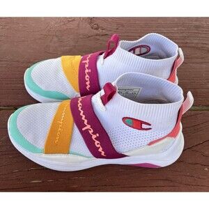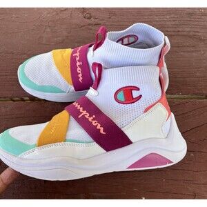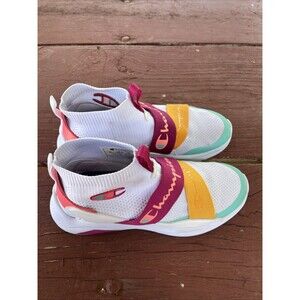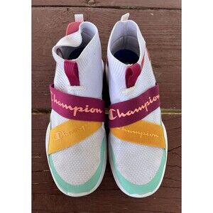 Stylish Champion athletic shoes. Features vibrant straps. Comfortable and breathable design.