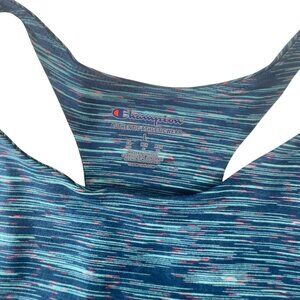 This Champion racerback crop tank top offers comfort and style, ideal for workouts or casual wear. The polyester blend ensures durability and breathability. Versatile blue multicolor design adds a modern touch to your wardrobe.