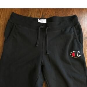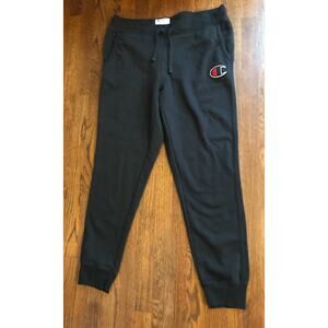 Champion Womens Black Fleece Jogger Pants Size L Drawstring Patch