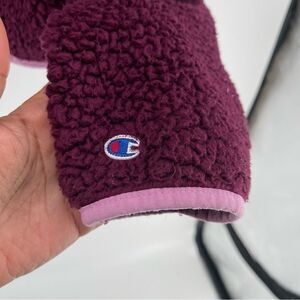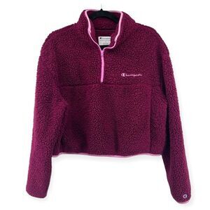Champion Women’s Burgundy Pink Quarter Zip Cozy Sherpa Crop Pullover Sweatshirt Large