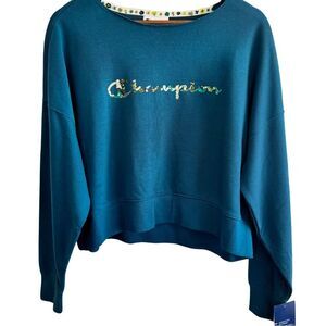 Champion Women's Campus French Terry Crew Neck Sweatshirt Blue NWT Size Medium