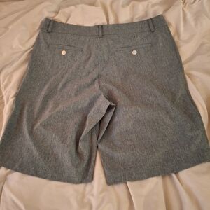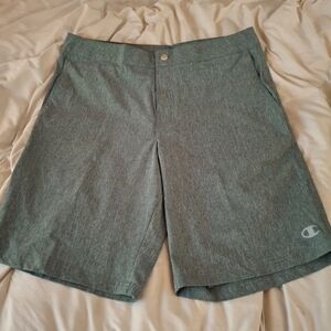 Champion women's heathered green Classic flat front design shorts. Comfortable fit. Ideal for everyday wear. Size XL. 40-42. waist side to side measures 18 inches. Length 23 inches.