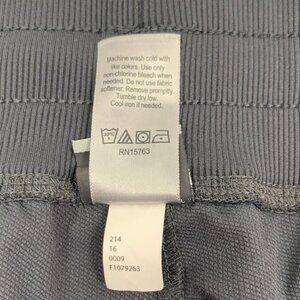 Champion jogger pants in charcoal gray lightweight soft touch polyester/spandex blend fabric. Side angled pockets. Subtle bottom cuffs at ankle. Relaxed through the upper thigh, tapers to the ankle. Drawstring and elastic at the waist. Pants stretch with your movement.