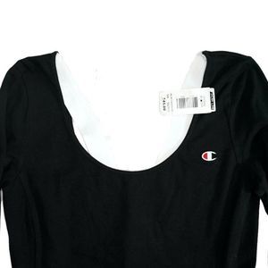 New Champion Women's Black Long Sleeve Cotton T-Shirt Bodysuit SZ Medium