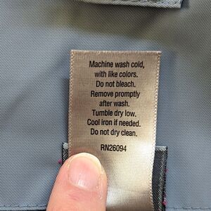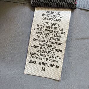 Front zipper and snap placard.