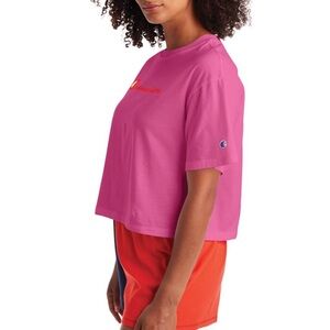Champion Women’s Pink Cropped T-Shirt Size XL Tee a must-have wear solo/…
