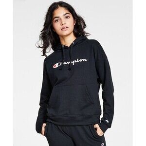 Champion Women's Relaxed Logo Fleece Pullover Sweatshirt Hoodie Black Large
