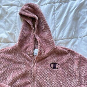 Champion Womens Size Large Sherpa Hood Full Zip Jacket Pink Pockets Winter Fall