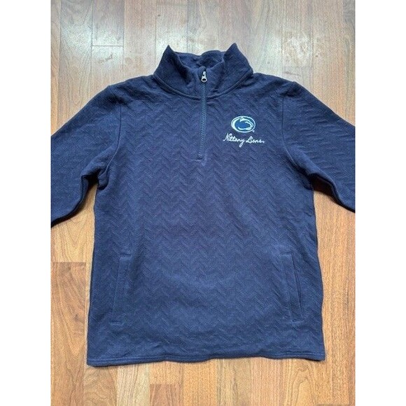 Champion Womens Sz Medium Navy Blue 1/4 Zip Knit Sweatshirt Penn State Textured