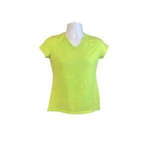 Champion Womens T-Shirt Small Neon Green V-Neck Short Sleeve Cotton Athleisure