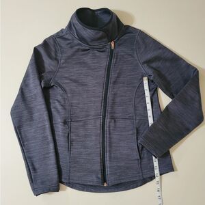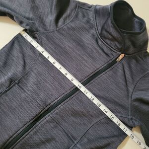 This Champion C9 jacket features a seamless collar for a distraction-free warm-up. Soft and sleek, the jacket is the embodiment of movement. Maneuver with ease in a comfortable 4-way stretch. Duo Dry moisture wicking performance fabric is breathable. Concealed thumb slits let you keep your sleeves in place, while the front pockets let you keep your essentials close. A perfect layer to get your mind and muscles ready or great for leisure wear and running errands or shopping. Very nice condition.