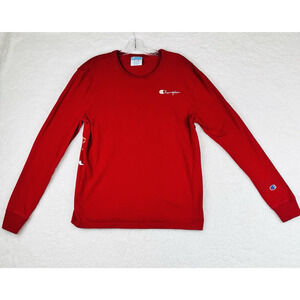 Champion Women's Tee Cotton Boyfriend Long-Sleeve Top Red Medium Back Logo