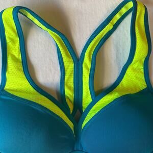 Champion Women’s V-neck Sport Bra size 34C (M), Neon Green & Blue