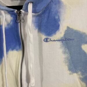 Champion Women's White Blue Yellow Tie Dyed Full Zip Hoodie