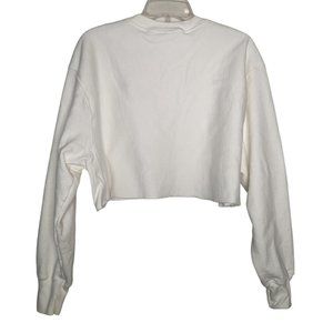 Champion Women's long sleeve white Cropped Reverse Weave Crew sweatshirt size L