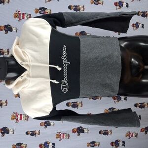 Champion Women's reverse weave spell-out chunky stripe crop top black & tan SM casual hoodie is in good shape with minimal wear. Good wash wear and fade. No hole's no stains, no loose threads