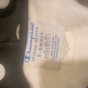 Champion logo on front and also on left sleeve.