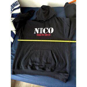 This hoodie offers a comfortable fit with a classic design. Featuring a bold "Nico Trenches" print, it's ideal for casual outings or athletic activities.