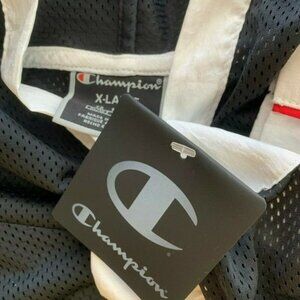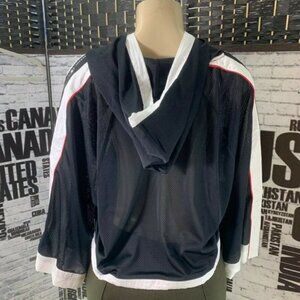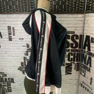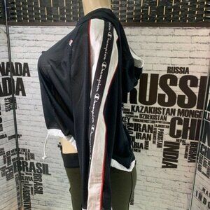 Champion XL Black Mesh Logo Drawcord Hemline 3/4 Zip Sleeve Crop Hoodie