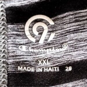 This Champion women's racerback tank top features a gray and black striped design that exudes casual style. Crafted from a blend of polyester and spandex, it offers a lightweight and stretchy fit that moves with you. With its flowing silhouette and comfortable XXL size, it's versatile for workouts or relaxed days.