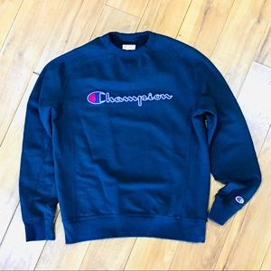 Champion athletic pullover sweatshirt navy blue medium warm cozy
