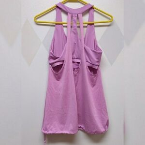 Athletic tank from C9 by Champion. Interesting strap detail and a built in bra. Polyester spandex blend. Drawstring waist. Lilac blush tone.