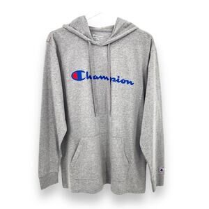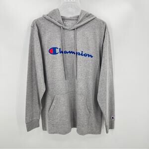 Champion heather gray pullover hooded long sleeve tee shirt