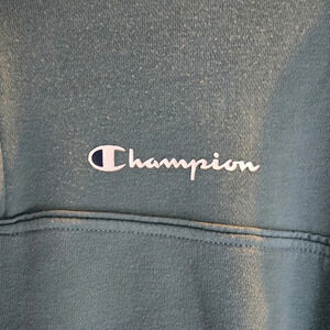 gently worn, size medium in a teal blue color. very tiny stain on the front as shown in photo.