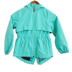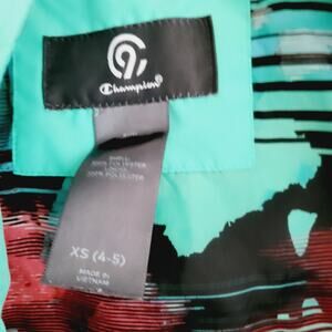 Champion teal aqua color light weight wind breaker hooded jacket. Size 4/5. Excellent used condition. Zip up pockets on front.