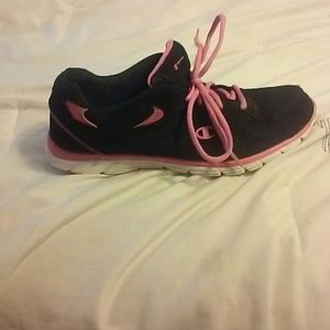 Pink and black sneakers/ workout shoes. They're worn but still in good condition