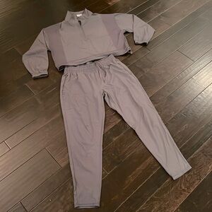 Pants are a medium. They do have a tear in the right thigh/knee area as shown in pictures