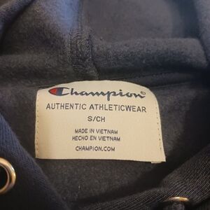 Champion womens pullover long sleeve blue hoodie with silver shimmer hem and cuff sleeves size small