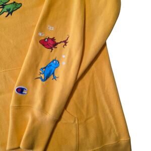 Champion x Dr. Seuss Reverse Weave Hoodie Large Yellow Pullover One Fish Two...