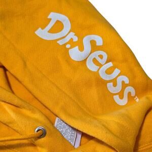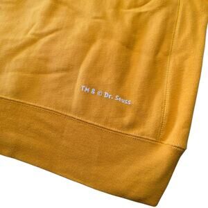 Add a playful and rare piece to your wardrobe with this limited edition Champion x Dr. Seuss collaboration hoodie. This bright golden yellow pullover features iconic Dr. Seuss “One Fish Two Fish” graphics alongside the classic Champion script logo across the chest. The hoodie also has a Dr. Seuss logo on the hood and official TM © Dr. Seuss marking on the back.