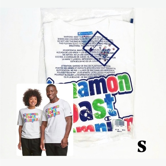 Brand New with Tags Champion x General Mills Crunch White T-Shirt in original shipping plastic, Size S!
