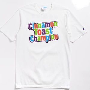 Screen-printed collaborative Cinnamon Toast Crunch & Champion graphics at the chest & back.