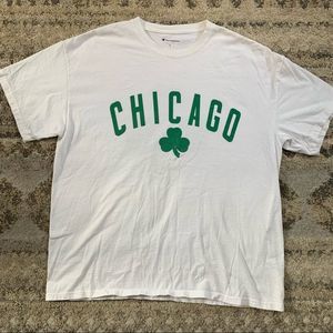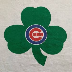 Excellent condition. No noticeable flaws or damages or stains. Size XL. White T-shirt with Chicago Cubs and green lucky cloverleaf. Awesome for St. Patrick’s day.