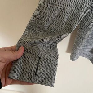 Pullover Mock neck Long sleeve Heather gray Thumb holes 92% polyester, 8% spandex AS